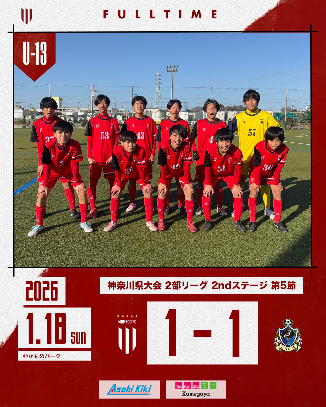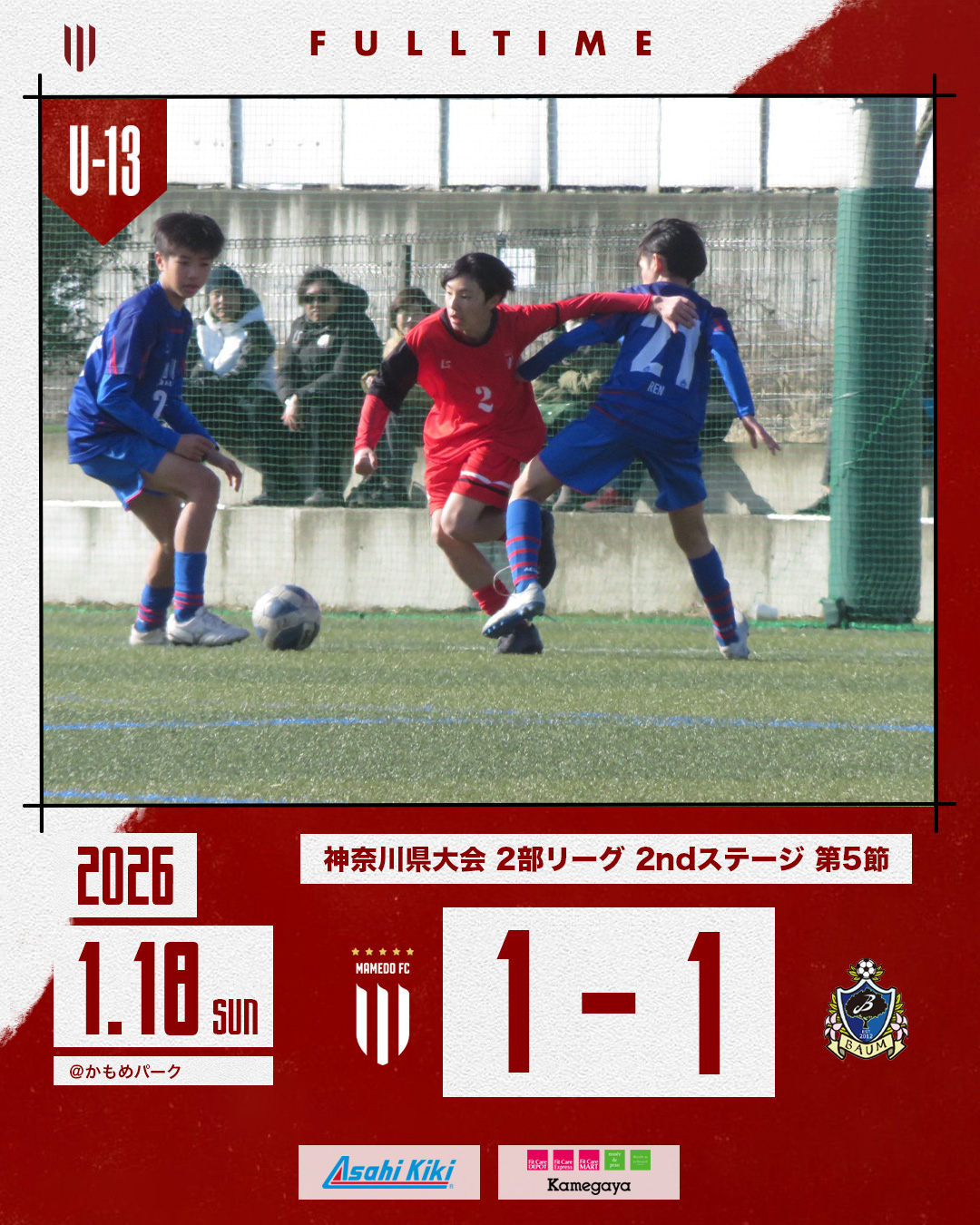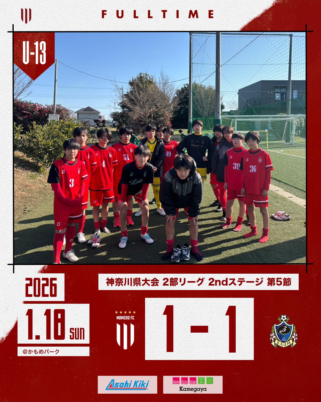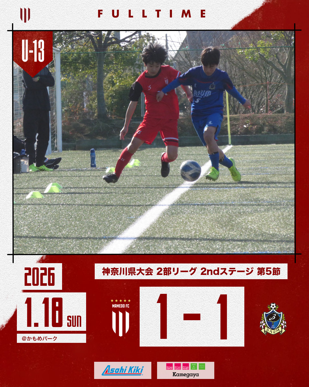 2026年1月18日 お知らせ U-13A 神奈川県リーグ 2025 2部 2ndステージ第5節 U-13A 神奈川県リーグ 2025 2部 2ndステージ第5節 会場:かもめパーク 対戦相手:バオムFC川崎 スコア:1-1 得点】池田(富士見台) 絶対に勝ち点3が欲しいゲームも残り2分に被弾し、二戦続けて手痛いドローとなりました。 残り2節、底力が試される! mamedofc 13 Like